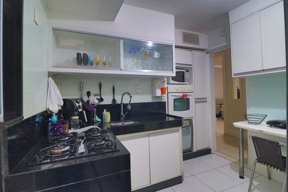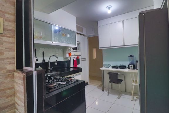 O imóvel possui 2 quartos, um deles suíte com closet; banheiro social; sala de TV (na planta original eram 3 quartos, um deles foi aberto para ampliar a sala), sala de jantar, cozinha com armários planejados, pequena área garden, área de serviço.