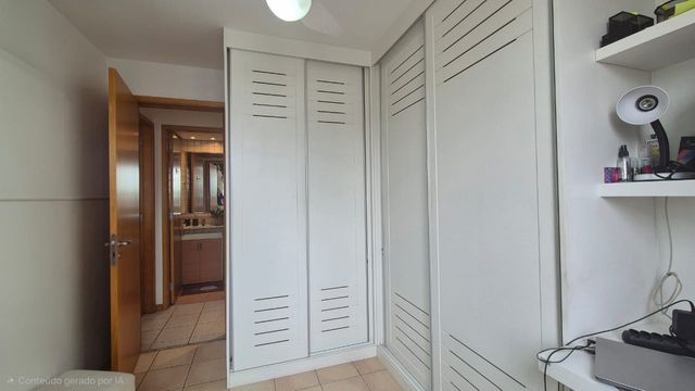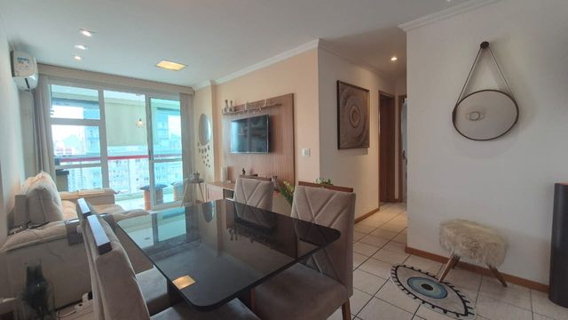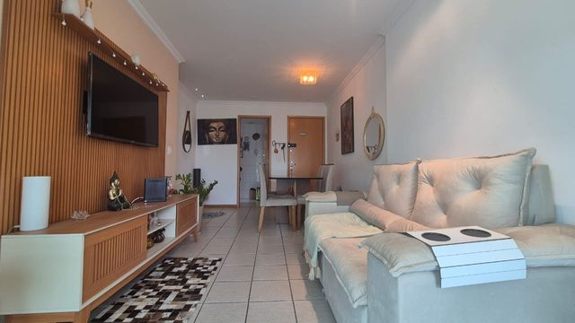 O imóvel possui sala dividida em dois ambientes; varanda com cortina de vidro; cozinha com armários planejados; área e banheiro de serviço; dois quartos com armários embutidos, um deles é uma suíte; banheiro social.