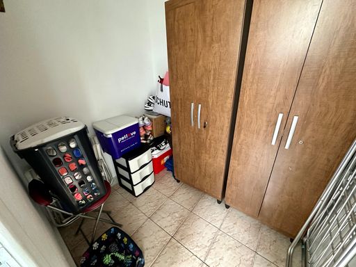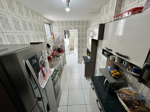 Possui sala ampla dividida em dois ambientes, dois quartos, banheiro social com box blindex, cozinha, lavanderia, quarto e banheiro de serviço.