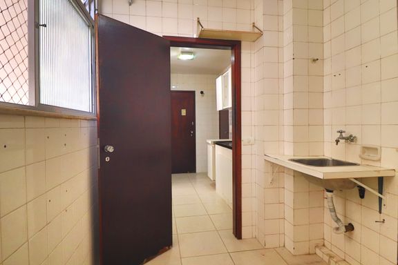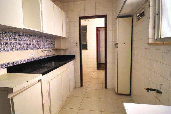 O imóvel possui sala em L; banheiro social; cozinha; lavanderia separada, quarto e banheiro de serviço; 2 quartos, um deles suíte.