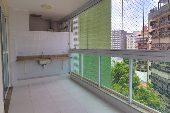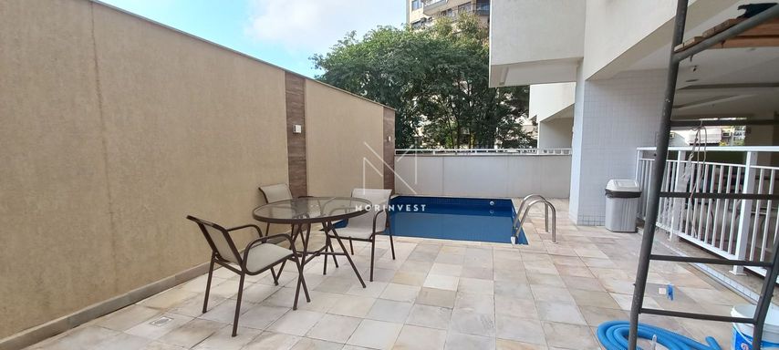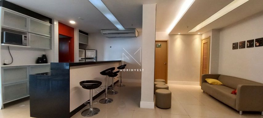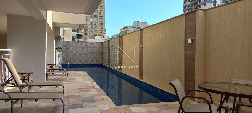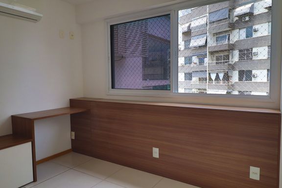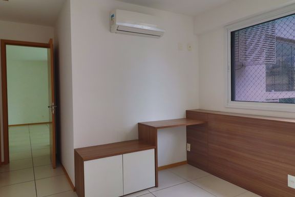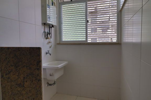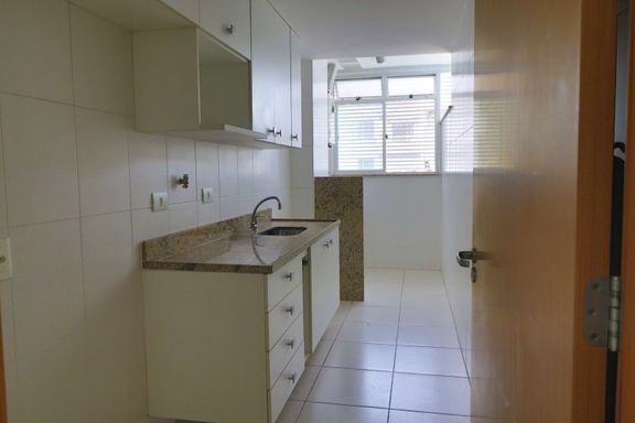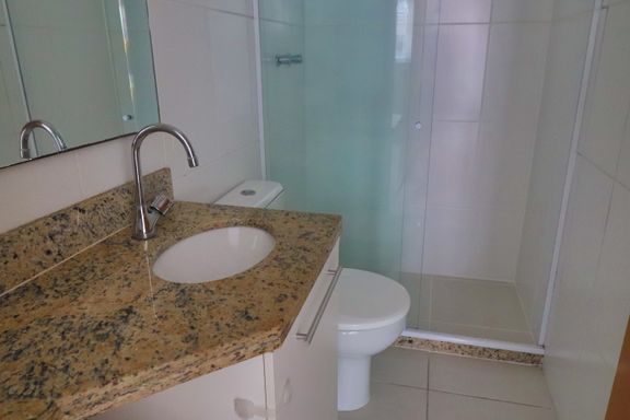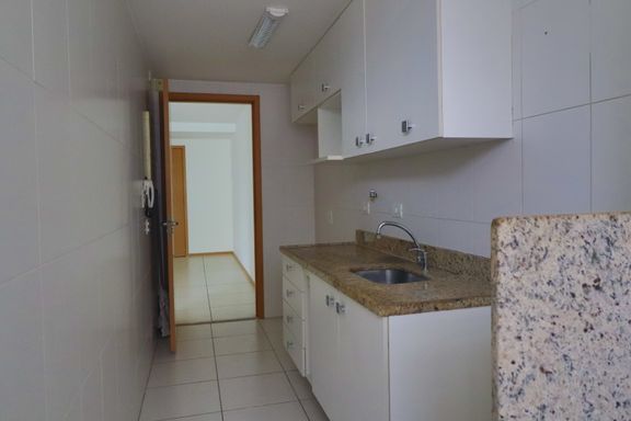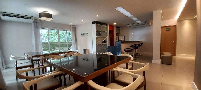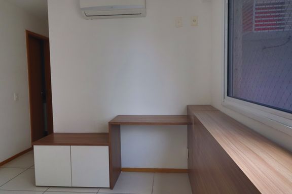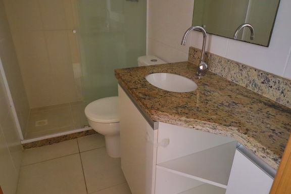O imóvel possui sala ampla, varanda com vista indevassável, lavabo, cozinha com armários planejados, área de serviço, banheiro social, dois quartos, um deles suíte com armários embutidos.