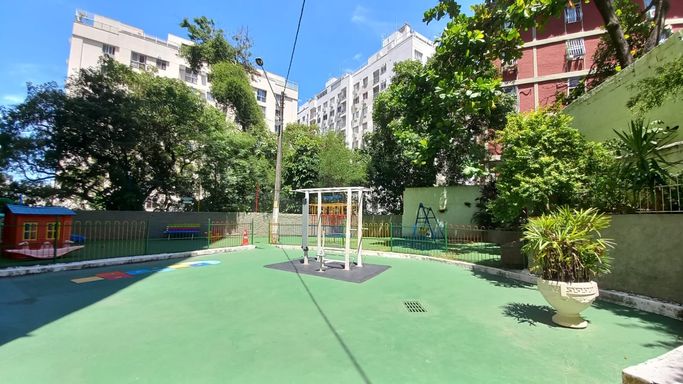 Condomínio possui guarita, portaria 24 horas, salão de festas, sala fitness, playground, 4 mini mercados (um para cada bloco), portaria com 2 elevadores modernizados em cada bloco.