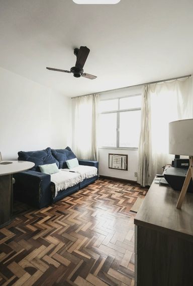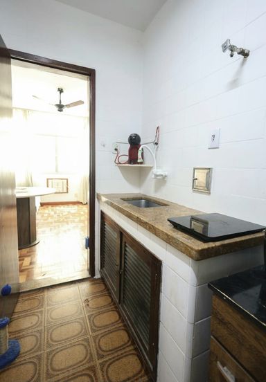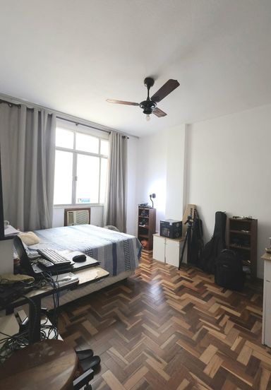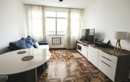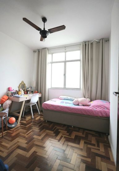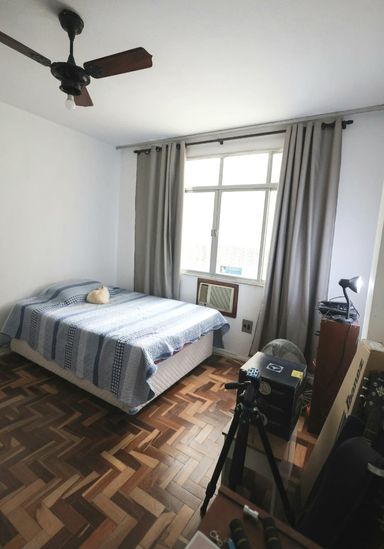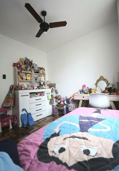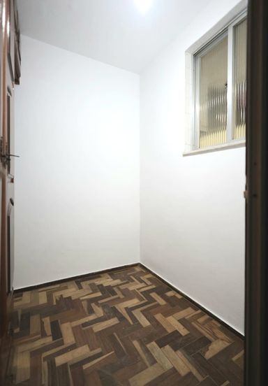 O imóvel tem excelente planta, muito bem distribuída; possui 3 quartos (a dependência de serviço foi revertida em pequena suíte); sala ampla dividida em dois ambientes; banheiro social; cozinha com armários; área de serviço possui um quarto que pode ser utilizado como copa ou depósito; banheiro de serviço.