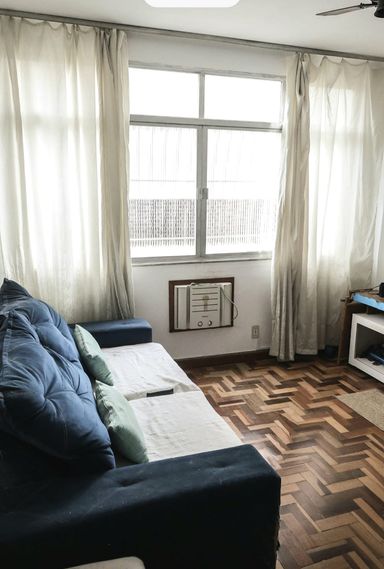 Apartamento na segunda quadra da praia, sol da manhã, indevassado, fundos (muito silencioso!), em condomínio com área de lazer.