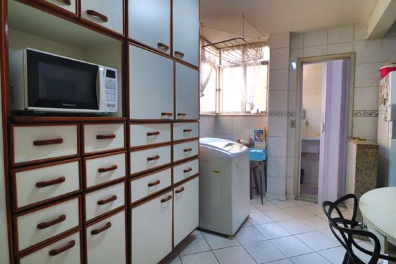 O imóvel possui 3 quartos (há possibilidade de se abrir um dos banheiros e fazer uma suíte), 2 banheiros sociais, sala dividida em dois ambientes, cozinha ampla com armários planejados, área e banheiro de serviço.