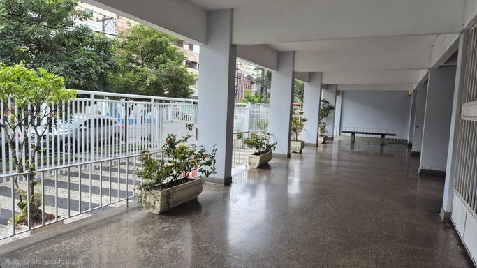 Condomínio com portaria 24 horas, elevador, bicicletário e salão de festas.