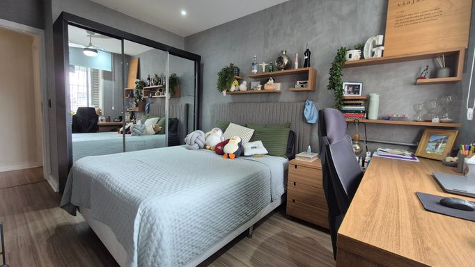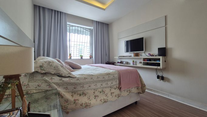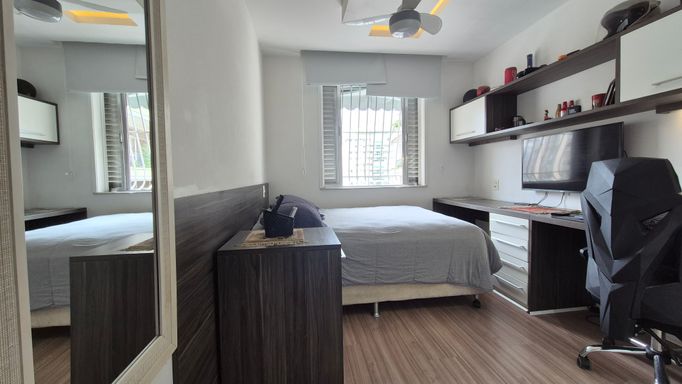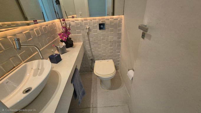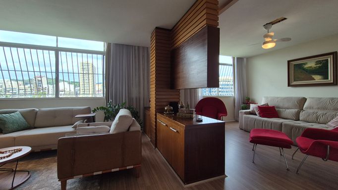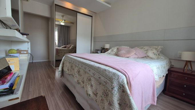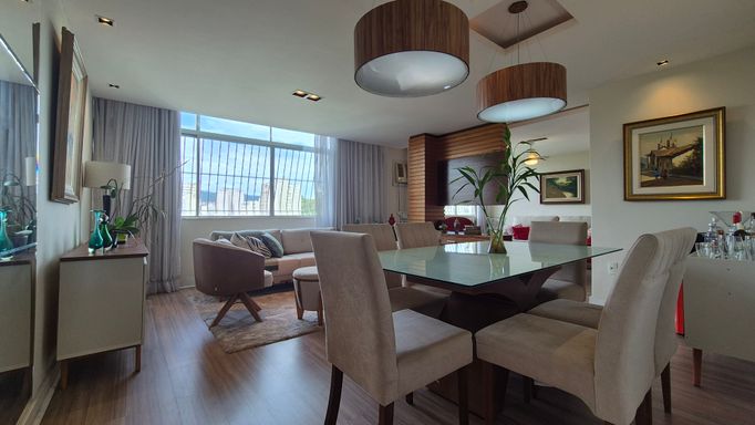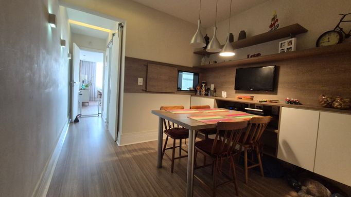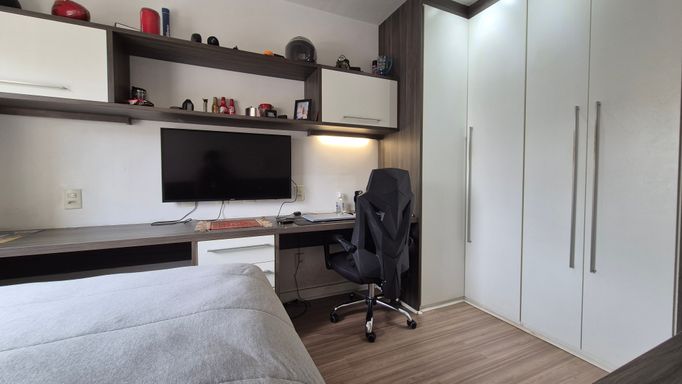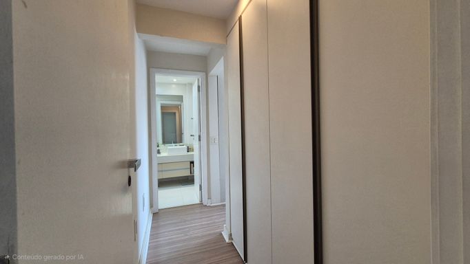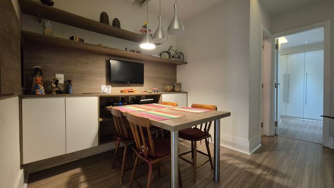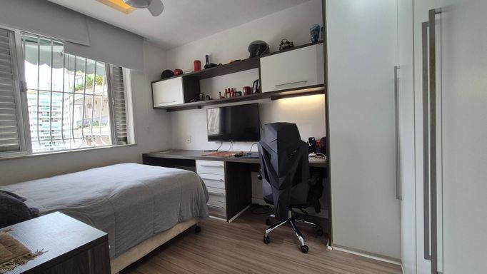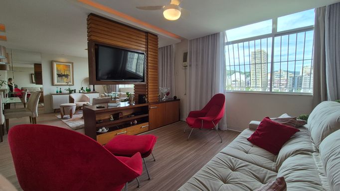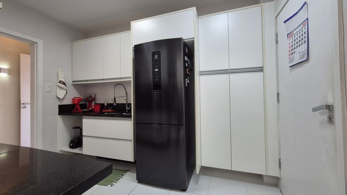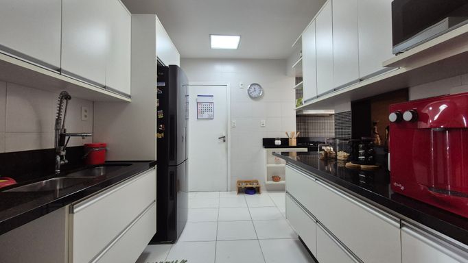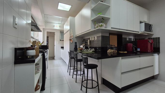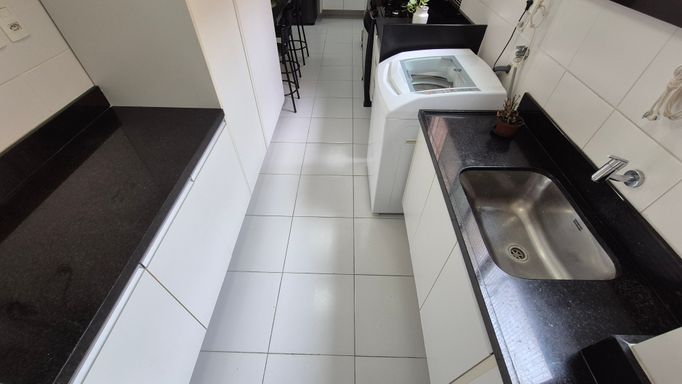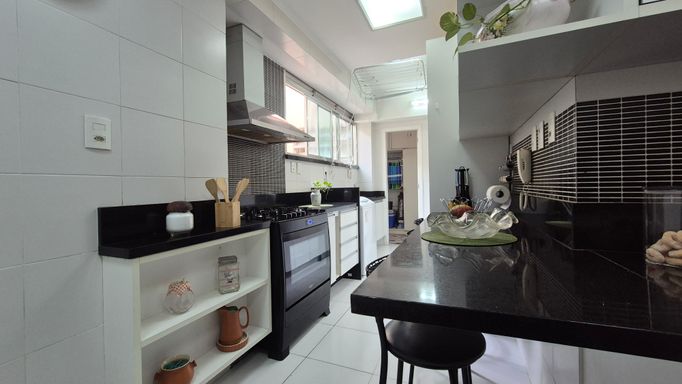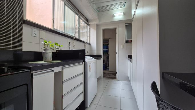 O imóvel possui 3 quartos, um deles suíte, todos com armários embutidos de excelente qualidade e ares condicionados; banheiro social; sala dividida em 3 ambientes; copa; cozinha com armários planejados; lavanderia; quarto multi uso e banheiro de serviço.