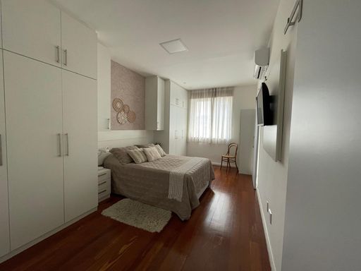 Totalmente reformado e decorado com extremo bom gosto, o imóvel oferece ambientes amplos, bem iluminados e arejados, além de ser indevassado, garantindo total privacidade. A sala em dois ambientes é um verdadeiro destaque, ideal para receber amigos e família com elegância, contando ainda com uma agradável vista parcial para o mar.