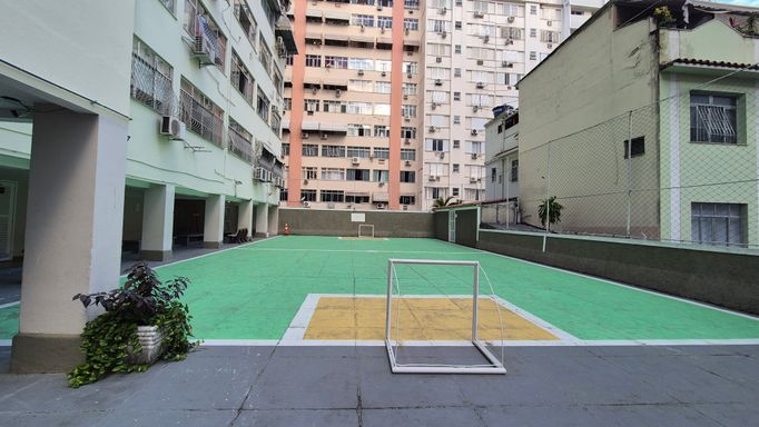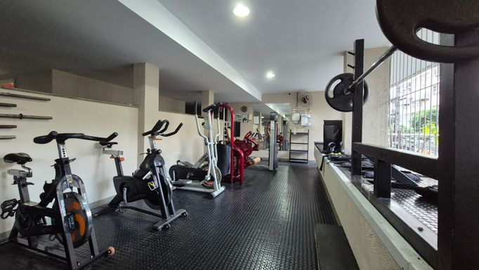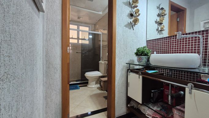 Condomínio com portaria 24 horas, dois bicicletários, academia de ginástica completa, churrasqueira com área gourmet, salão de festas com ar condicionado, brinquedoteca, quadra poliesportiva.