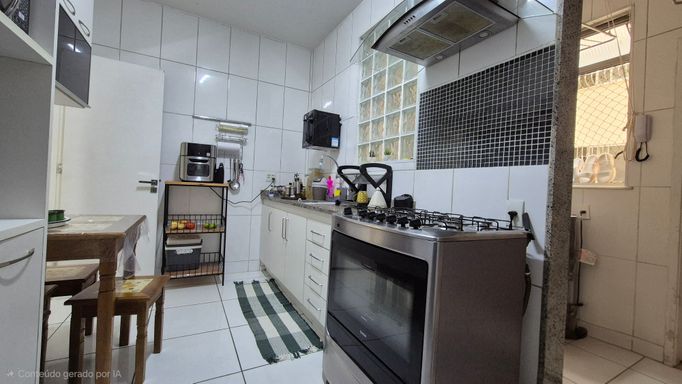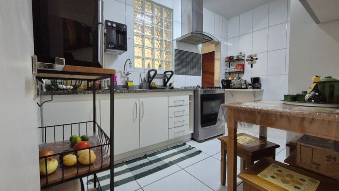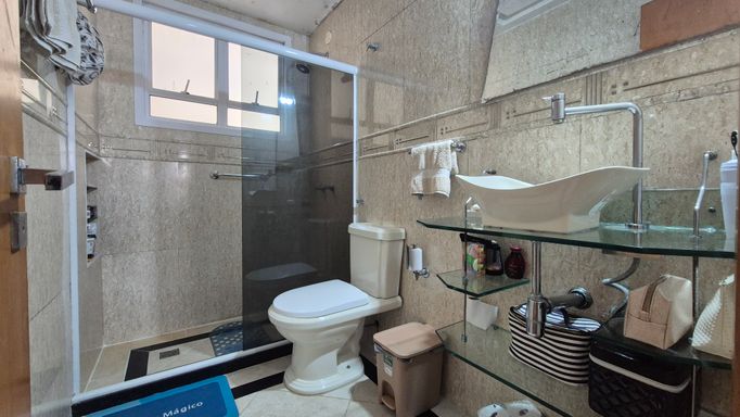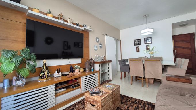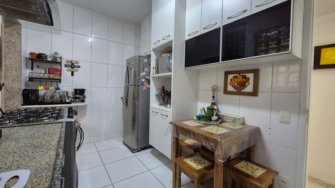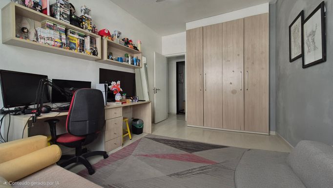 O imóvel possui 3 quartos com armários, um deles suíte; sala dividida em dois ambientes; banheiro social; cozinha com armários planejados; lavanderia separada; quarto multiuso e banheiro de serviço.