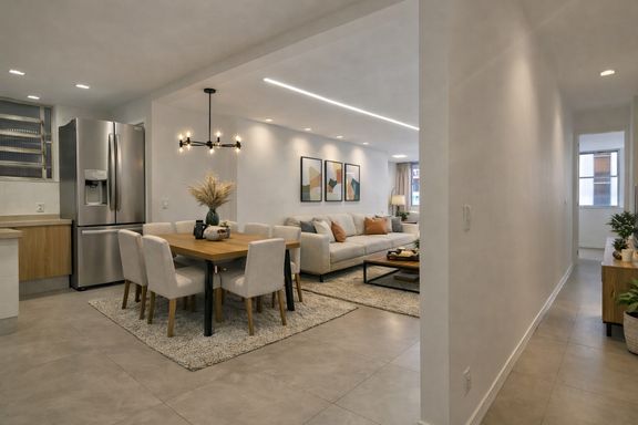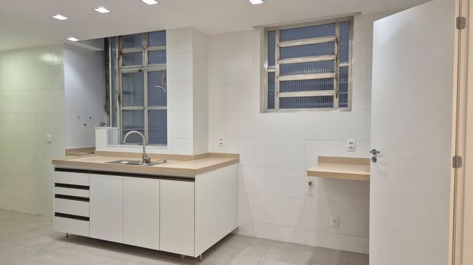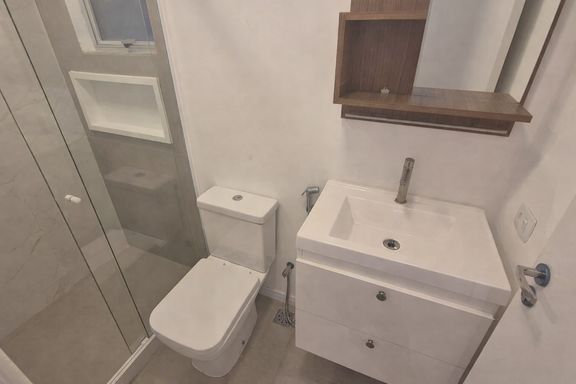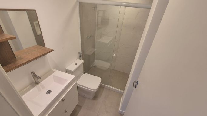 O apartamento possui 4 quartos, dois deles são suítes; sala ampla com cozinha integrada, esta com armários; lavabo; despensa; banheiro social; iluminação interna e rebaixamento de gesso em todo o imóvel.