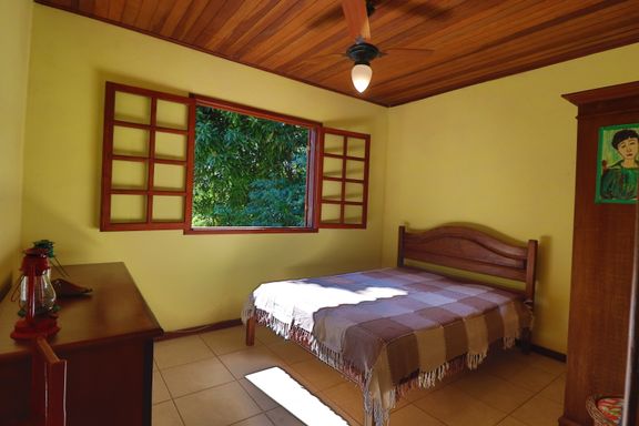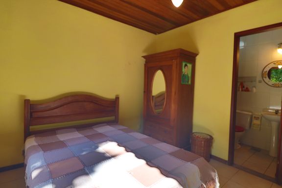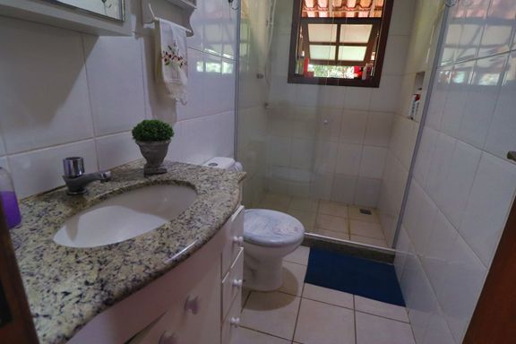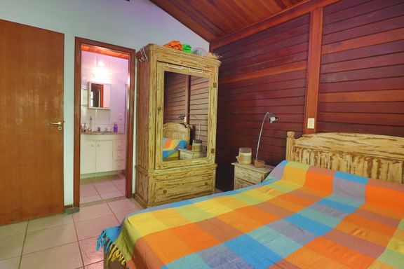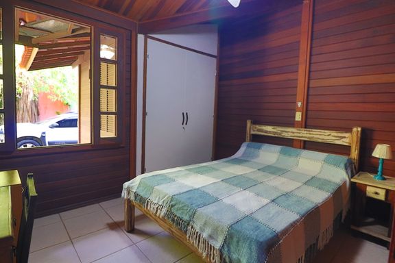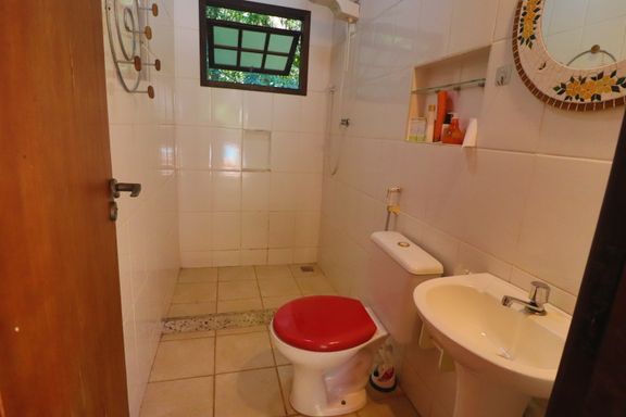 A casa principal é linda! Possui varanda em L; sala; cozinha em conceito aberto; 3 quartos, todos com vista para área verde, um deles é uma suíte; banheiro social; área de serviço e despensa.
