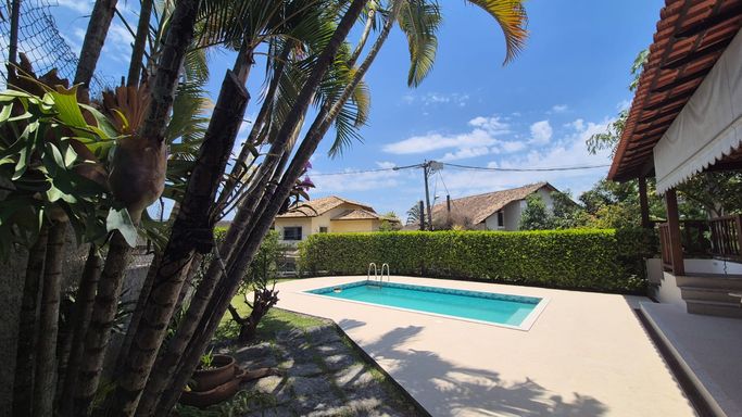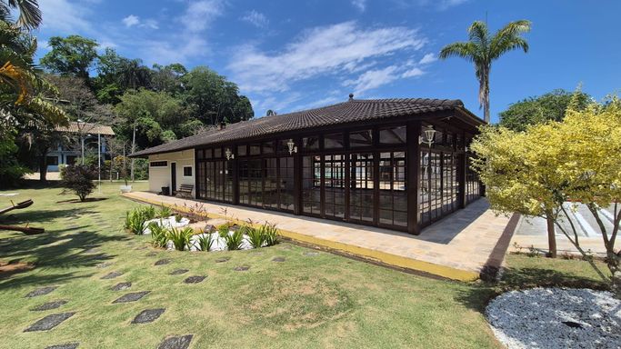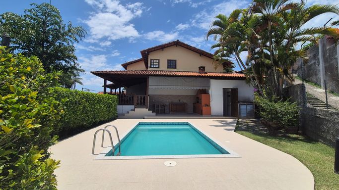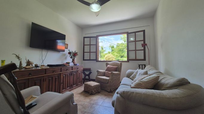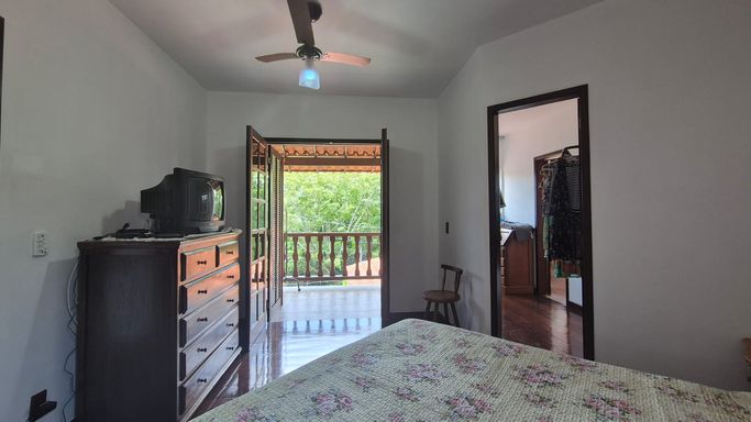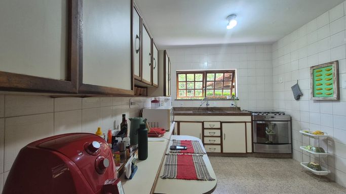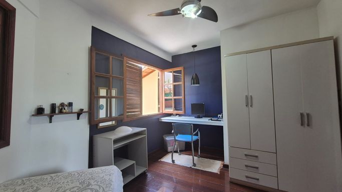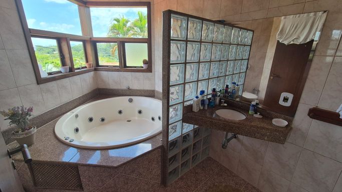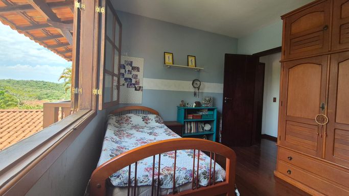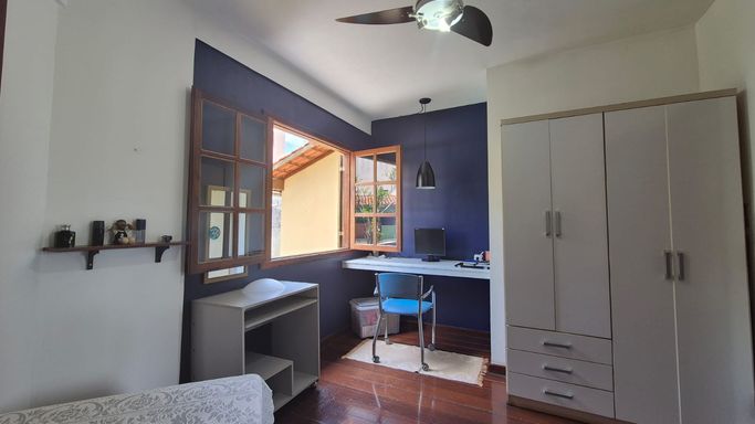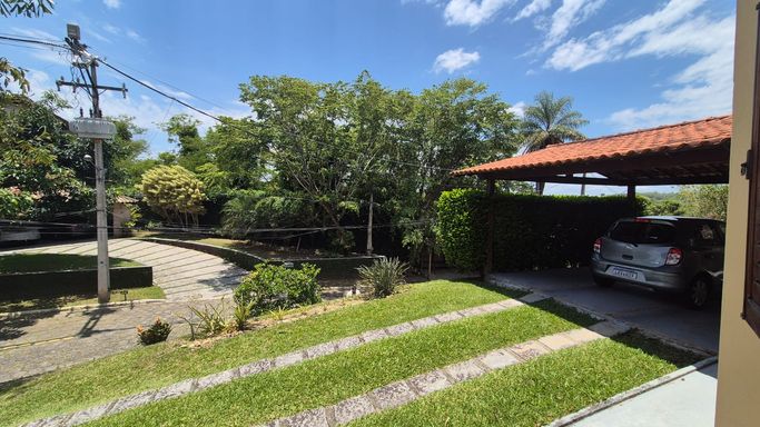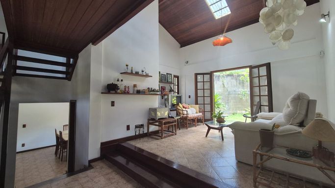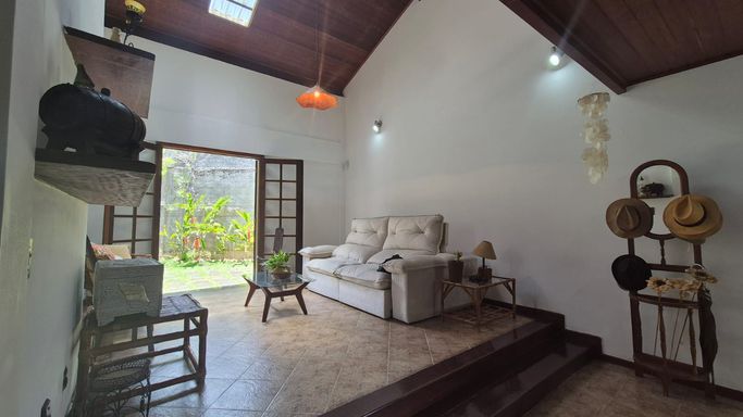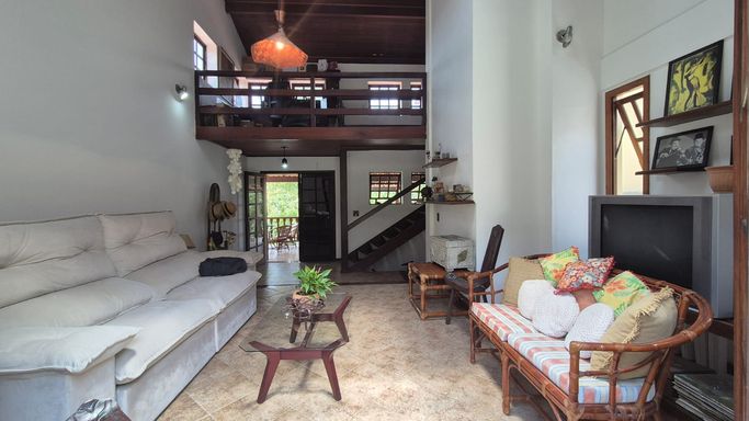 A casa é clara, arejada, pé direito duplo, reforma contemporânea, linda vista para área verde e montanhas.