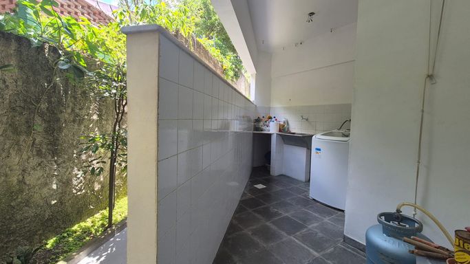 Varanda frontal; sala dividida em dois ambientes com mezanino; banheiro social; sala de jantar; sala de estar (há opção desta ser utilizada como quarto no primeiro pavimento) ; cozinha com armários planejados; lavanderia; quarto e banheiro de serviço; quintal.