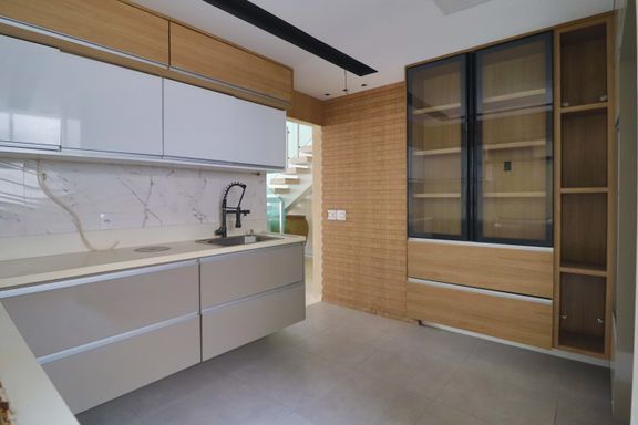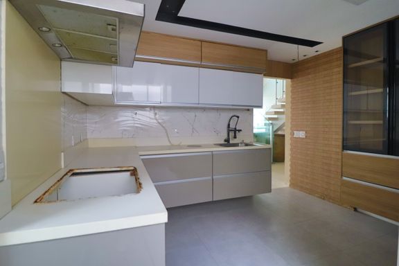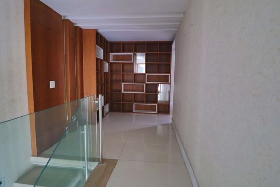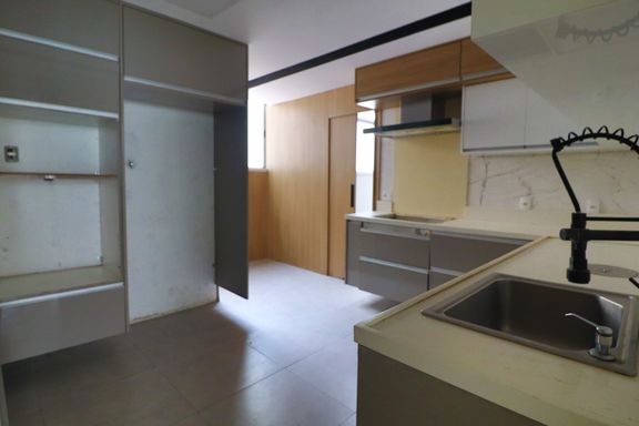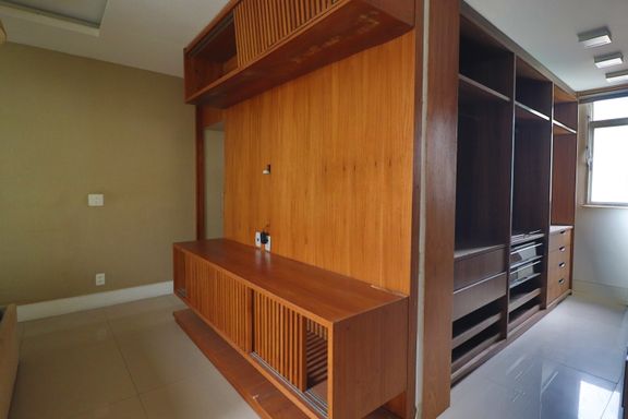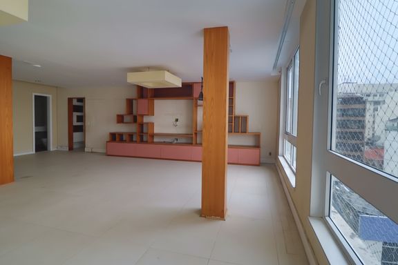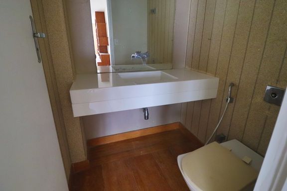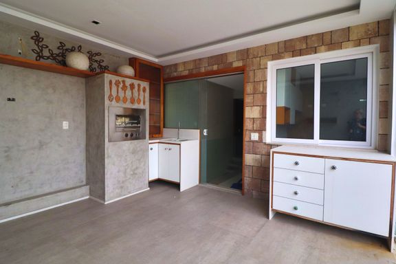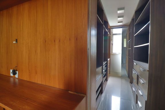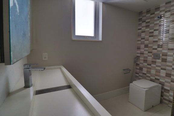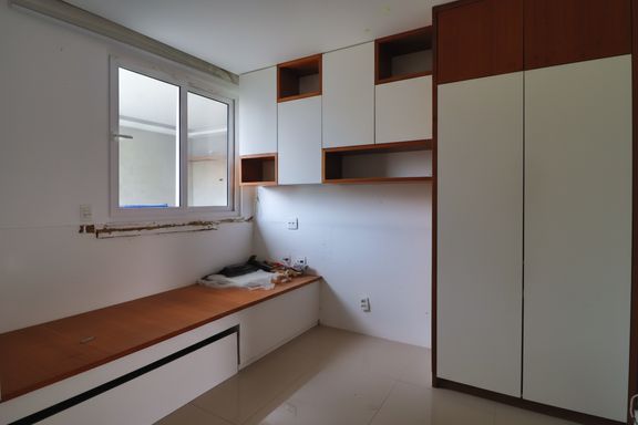 Primeiro pavimento: Sala muito ampla, com divisão para 3 ambientes; duas suítes (uma delas é o quarto de serviço); lavabo; cozinha com armários planejados; lavanderia.